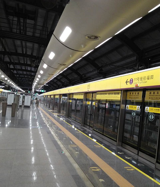 11號(hào)線線路總長(zhǎng)51.936km,線路起終點(diǎn)均預(yù)留了將來(lái)繼續(xù)延伸的條件;沿線共設(shè)置有18座車(chē)站,其中地下站14座,高架站4座;換乘站10座。在松崗設(shè)車(chē)輛段1座,在機(jī)場(chǎng)北設(shè)停車(chē)場(chǎng)1座。深圳11號(hào)線工程14座地下車(chē)站共28側(cè)全部設(shè)置屏蔽門(mén),2座高架站共4側(cè)設(shè)置全高安全門(mén)。