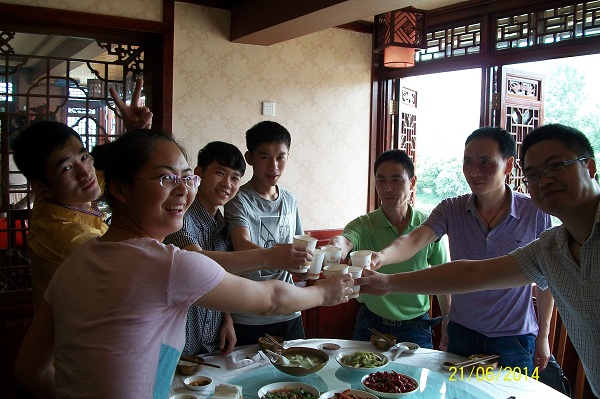 午餐選址在黃龍溪邊上,透過窗戶壽星們可以欣賞溪邊風景。當美美的大餐端上桌前,壽星們共同舉杯,互相為彼此祝福著“生日快樂”。此時此刻他們不僅在為彼此祝福,也在為我們方大美好的明天祝福。