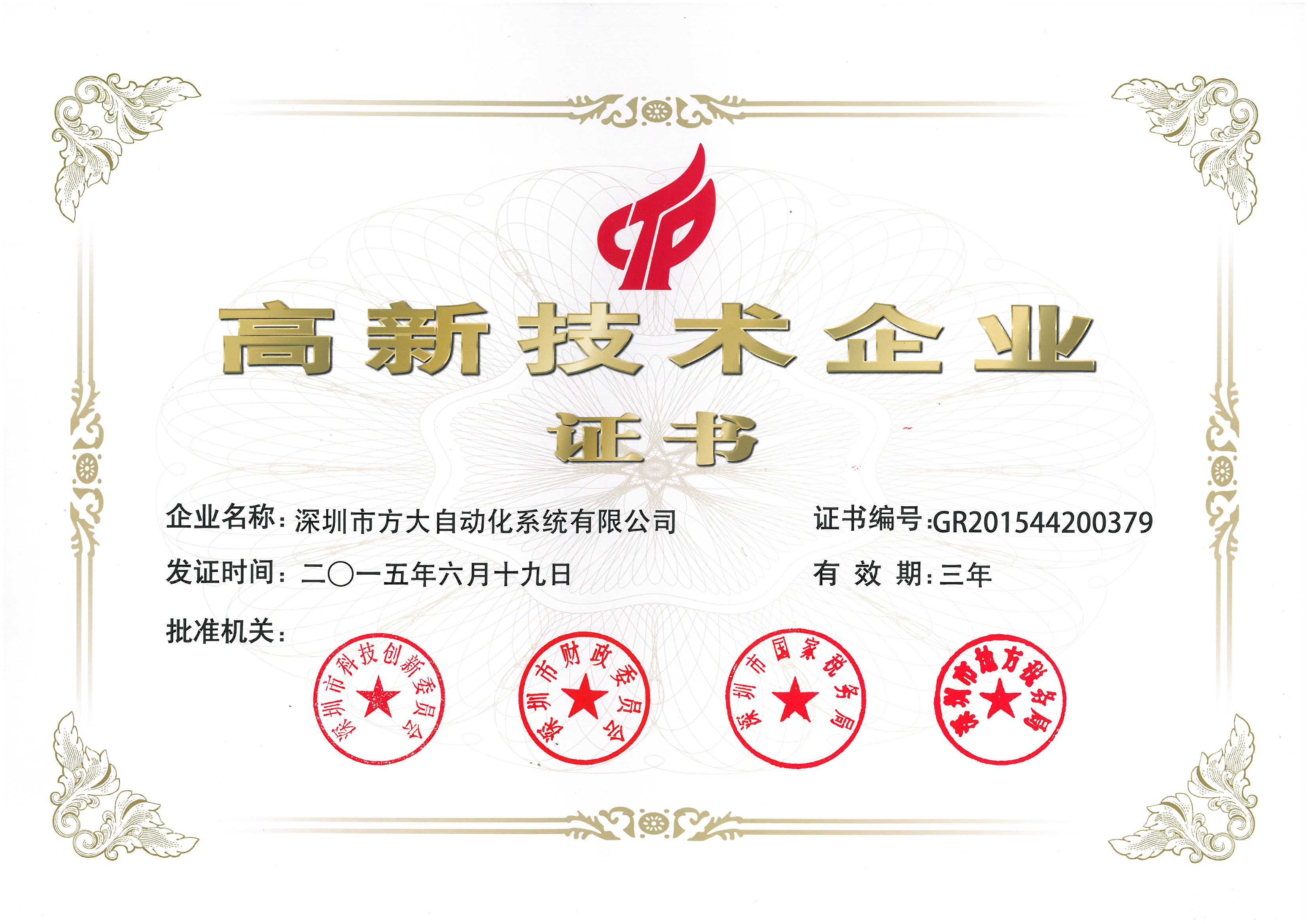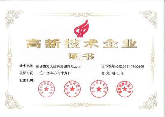 近期,根據科技部、財政部、國家稅務總局《高新技術企業認定管理辦法》和《高新技術企業認定管理工作指引》的規定,經企業申報、地方初審、專家審查、公示等嚴格的申報程序,方大集團股份有限公司全資子公司深圳市方大建科集團有限公司、深圳市方大自動化系統有限公司被認定為國家高新技術企業,成為深圳市2015年第一批國家高新技術企業。