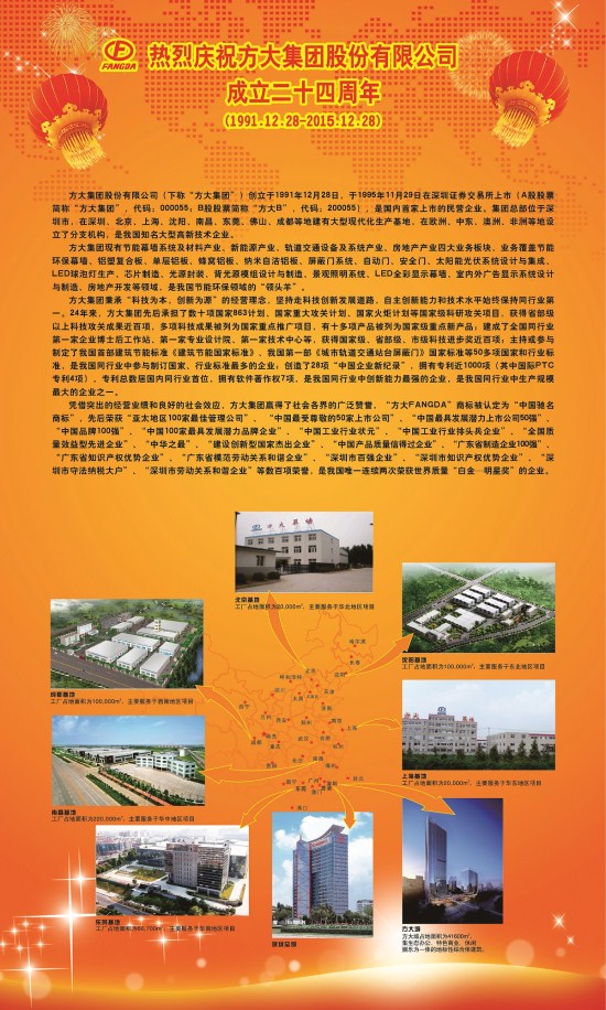 熱烈慶祝方大集團(tuán)股份有限公司成立二十四周年(1991.12.28-2015.12.28)