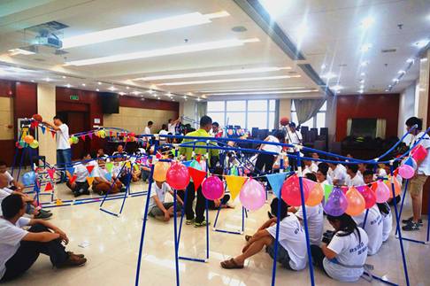 最后,活動要求每組把自己所搭接的過山車模型連接起來,實現籃球在各個軌道中的連續滾動。這一個個相連的軌道就像是一個完整的生命樹系統,通過一個籃球的滾動實現了彼此的連接,成就了共同的目標與價值。這也正像建科集團的各個團隊通過各自團隊員工的認真負責,努力完成本團隊任務,進而通過各團隊的相互配合與連接實現集團共同的目標。