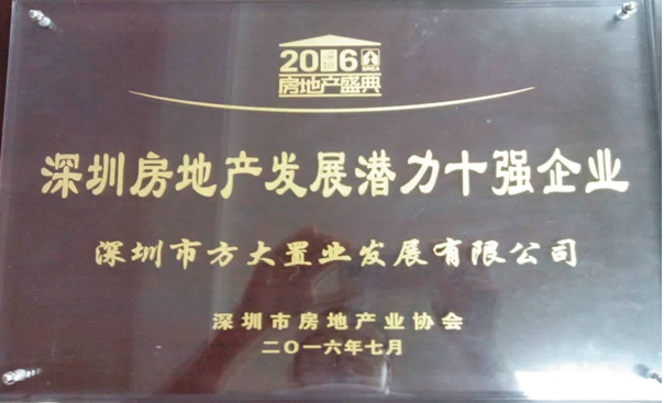 近日,2016深圳房地產盛典暨行業綜合評價發布會舉行,深圳市方大置業發展公司被深圳市房地產業協會授予“深圳房地產發展潛力十強企業”榮譽稱號。此次活動由深圳市規劃和國土資源委員會、深圳市社會組織管理局指導,深圳市房地產業協會主辦。