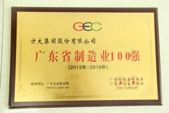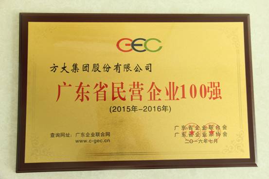 方大集團榮獲“2016廣東省企業500強”等多項榮譽