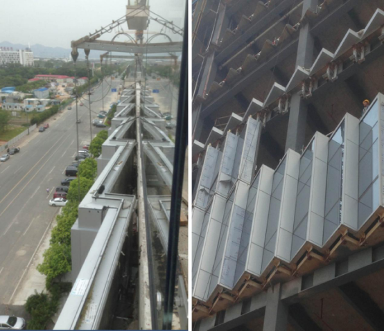 采用大量鋸齒狀單元板塊的深圳阿里巴巴大廈幕墻系統,對現場安裝的施工精準度要求很高。方大建科從源頭控制,確保工廠材料的加工精度;現場施工時,通過前期的精密測量放線,過程中進行嚴格的質量控制;施工后,實行一絲不茍的質量驗收和優化,以保證最完美的幕墻安裝效果。