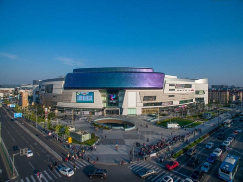 上海七寶萬科廣場(新建七寶鎮(zhèn)53號地塊商業(yè)項(xiàng)目)位于閔行區(qū)七寶鎮(zhèn),是一座集餐飲、休閑、購物于一體的綜合性大型商場。廣場主入口處采用大面積曲面空間弧形漸變式炫彩鋁板幕墻,營造出靈動歡快的視覺效果,散發(fā)著濃郁的都市時尚氣息,此前國內(nèi)幕墻工程領(lǐng)域還沒有如此大面積炫彩鋁板的集中使用。為了達(dá)到理想中的漸變效果,公司領(lǐng)導(dǎo)、項(xiàng)目部、設(shè)計院及其他相關(guān)部門多次赴現(xiàn)場考察、召開研討會,在大家的共同努力下,順利解決了鋁板噴涂的色差問題。同時,方大人大膽創(chuàng)新,根據(jù)曲面、曲線分格把眾多小三角形鋁板做成單元板塊來安裝,確保了施工精度,提高了工程進(jìn)度,節(jié)省了項(xiàng)目成本。