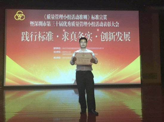 黃良江獲頒“深圳市質(zhì)量信得過(guò)班組先進(jìn)個(gè)人”榮譽(yù)獎(jiǎng)