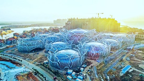 海口·恒大?;◢u位于海南省儋州市,該島由三個既獨立又緊密相連的離岸式島嶼組成,從高空俯瞰,形狀猶如一朵盛開的鮮花。方大建科承建國際會議中心幕墻工程,由9個單獨的球型建筑組成,各球體幕墻采用了玻璃面板。項目團隊攻克異形幕墻設計施工、鋼結構屋蓋跨度大以及施工作業面小等難題,與業主攜手并肩,互相激勵,不辭一切加快1#島項目建設,為海花島的開業打下了堅實的基礎。