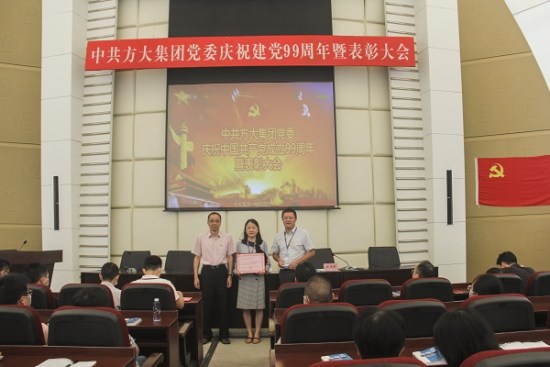 2020年7月1日,中共方大集團黨委慶祝中國共產黨成立99周年暨表彰大會在深圳方大大廈報告廳召開。會議對方大集團先進黨組織、優秀共產黨員、優秀黨務工作者進行表彰,并組織預備黨員進行入黨宣誓。方大集團黨委書記魏越興出席會議并講話,會議由黨委委員、紀委書記周志剛主持,駐深企業全體黨員、駐外受表彰的先進黨組織負責人代表、優秀共產黨員、入黨積極分子參加會議。